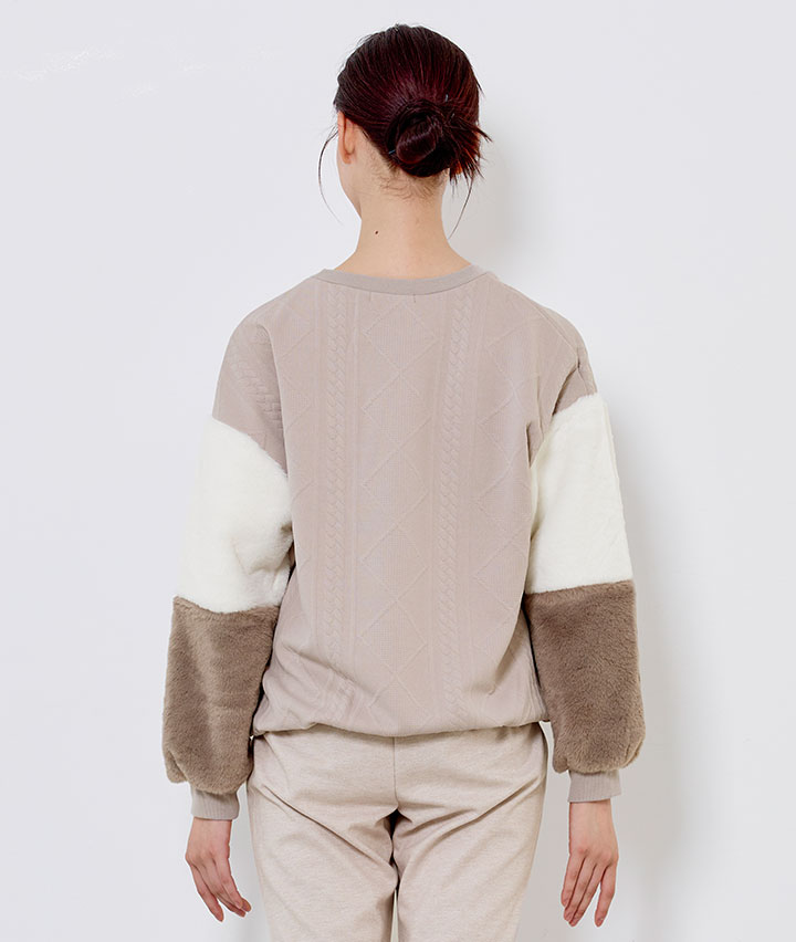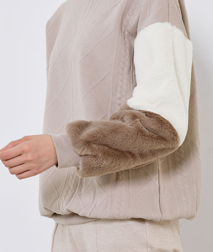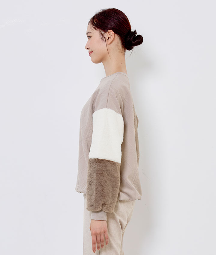 ・袖の配色ファーがボリューム感のあるプルオーバーです。