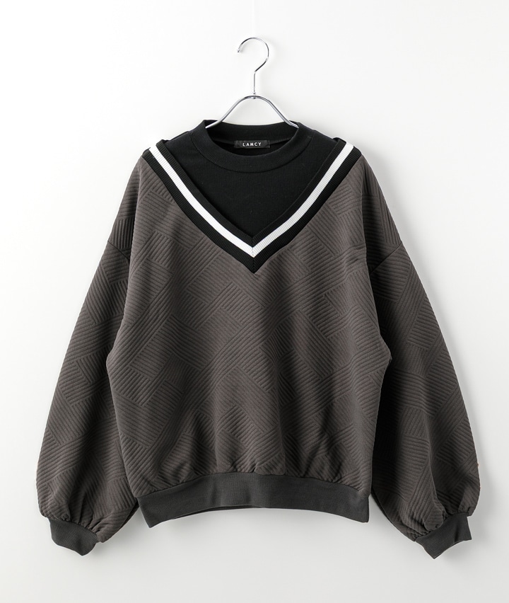 ・トレンド見えが叶う”重ね着風”デザイン。ケーブル柄ドッキングデザインがコーディネートにアクセントをプラス。