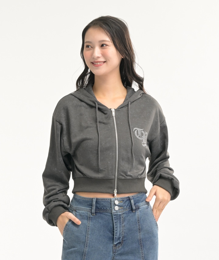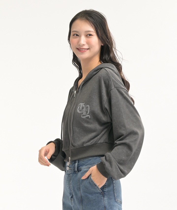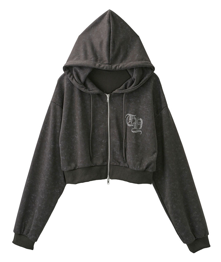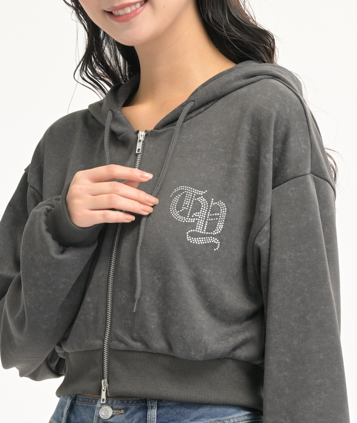 トレンドのラインストーンロゴ×短丈ジップパーカーの最推しアイテムです。
