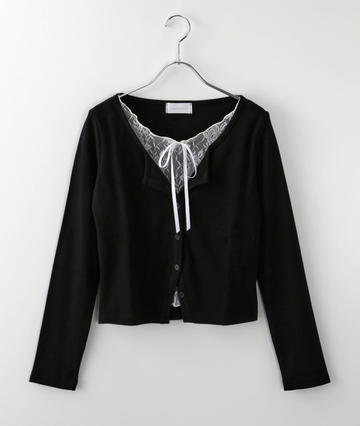 ・レースのレイヤード見えするカーディガンです。
