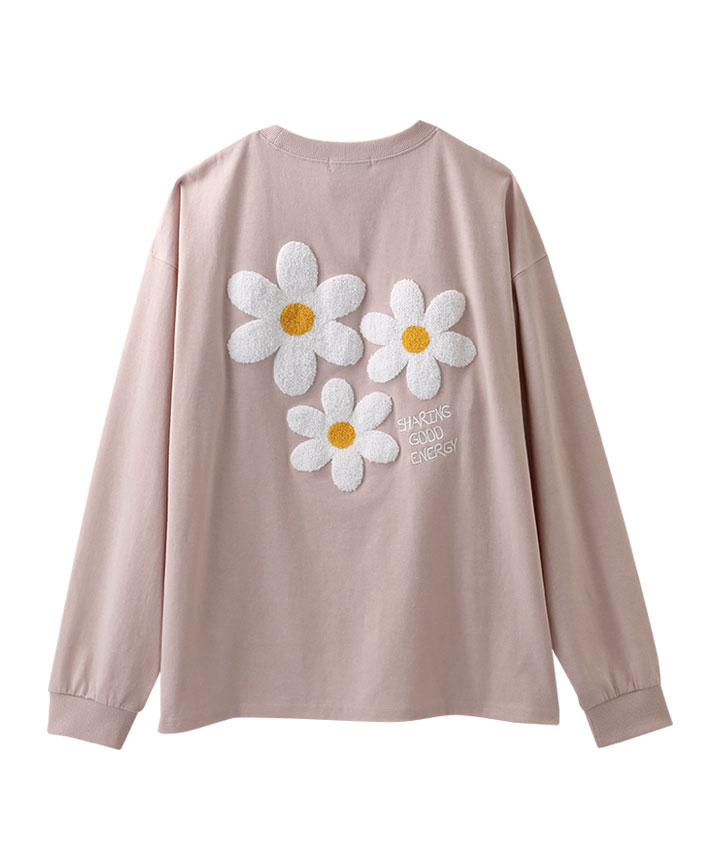 ・フラワーロゴグラフィックのサガラ刺しゅうがポイントの長袖Tシャツ。