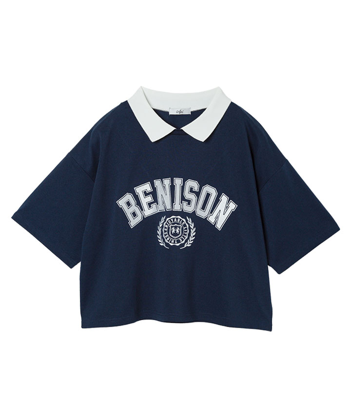 ・カレッジロゴグラフィックの刺繍がポイントの襟付き半袖Tシャツです。