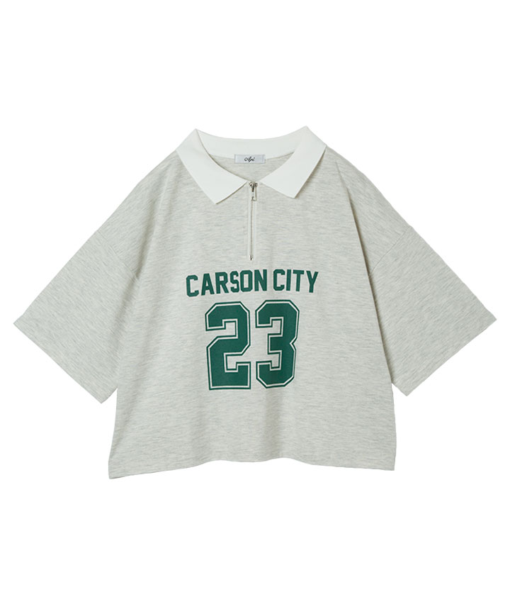 ・フロントにナンバリングプリントされたハーフジップTシャツです。