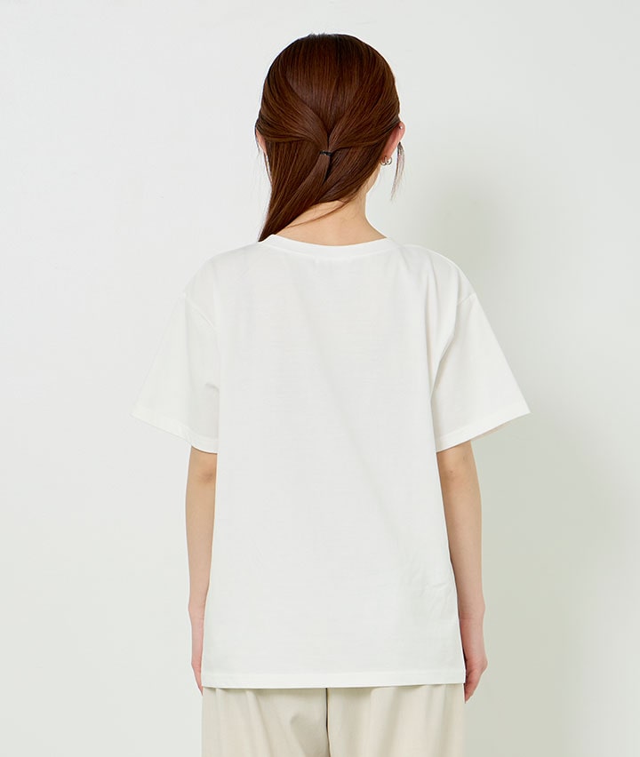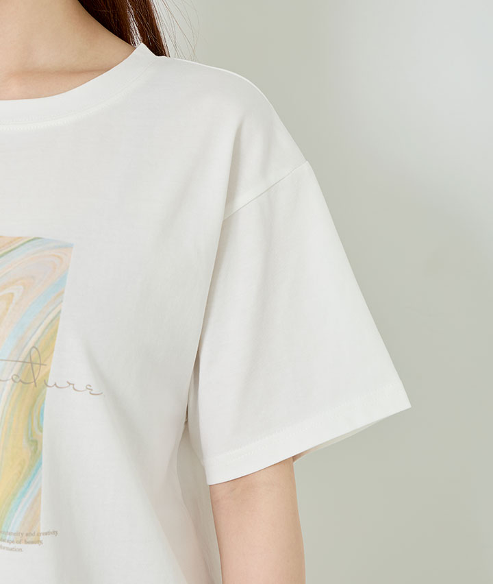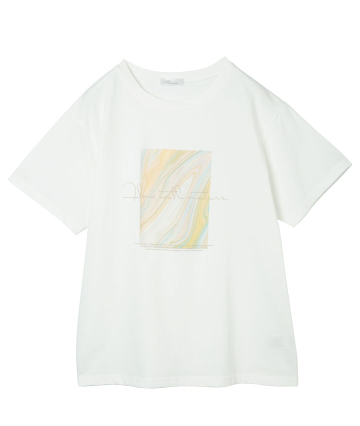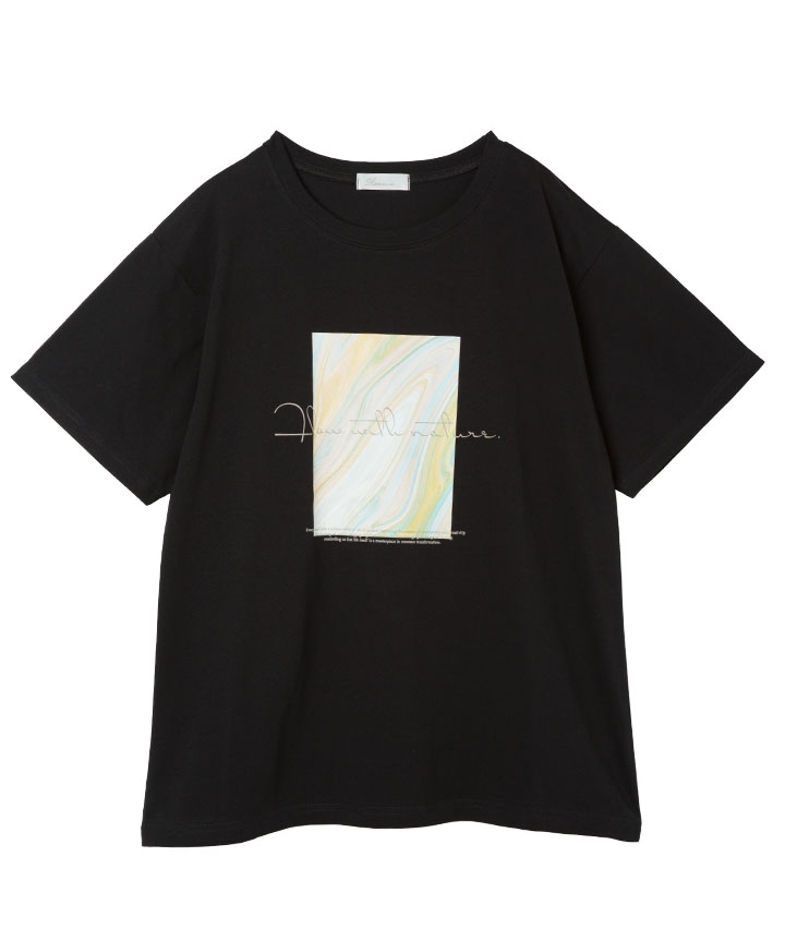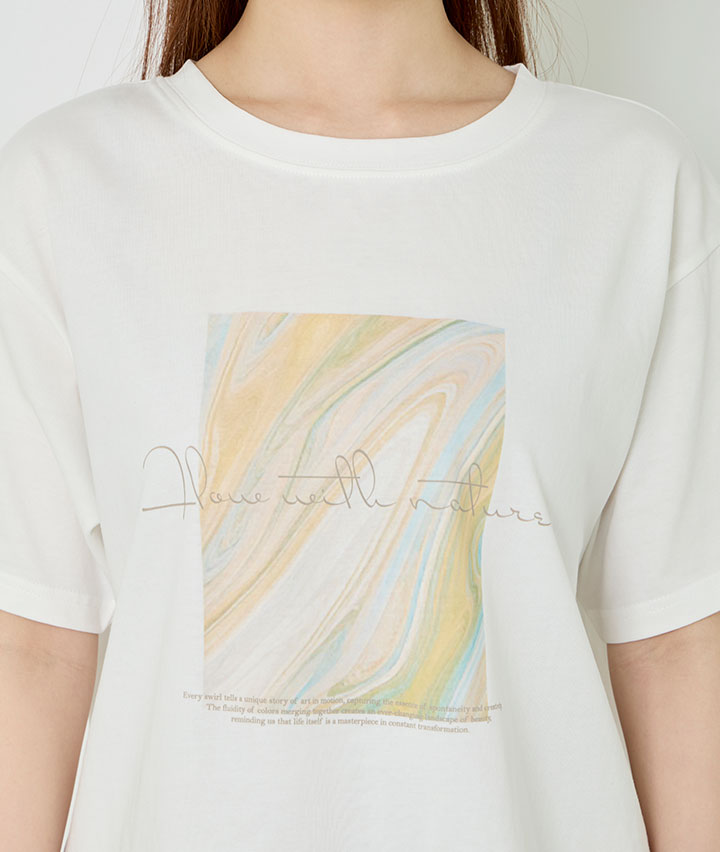 ・フロントにマーブル柄をプリントしたTシャツです。ゆとりのあるサイズ感で着用しやすいです。