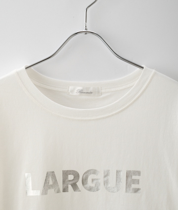 ・光沢のあるプリントのロゴTシャツです。ゆとりのあるサイズ感で着用しやすいです。