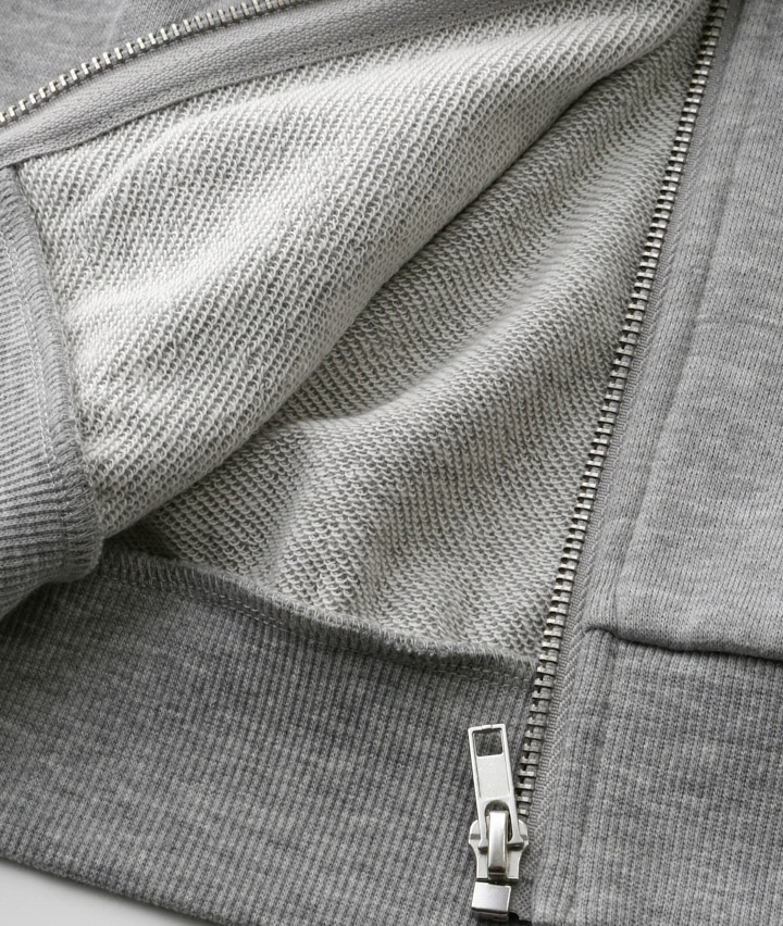 ・左胸、袖、バックに刺繍が入っているフルジップパーカです。