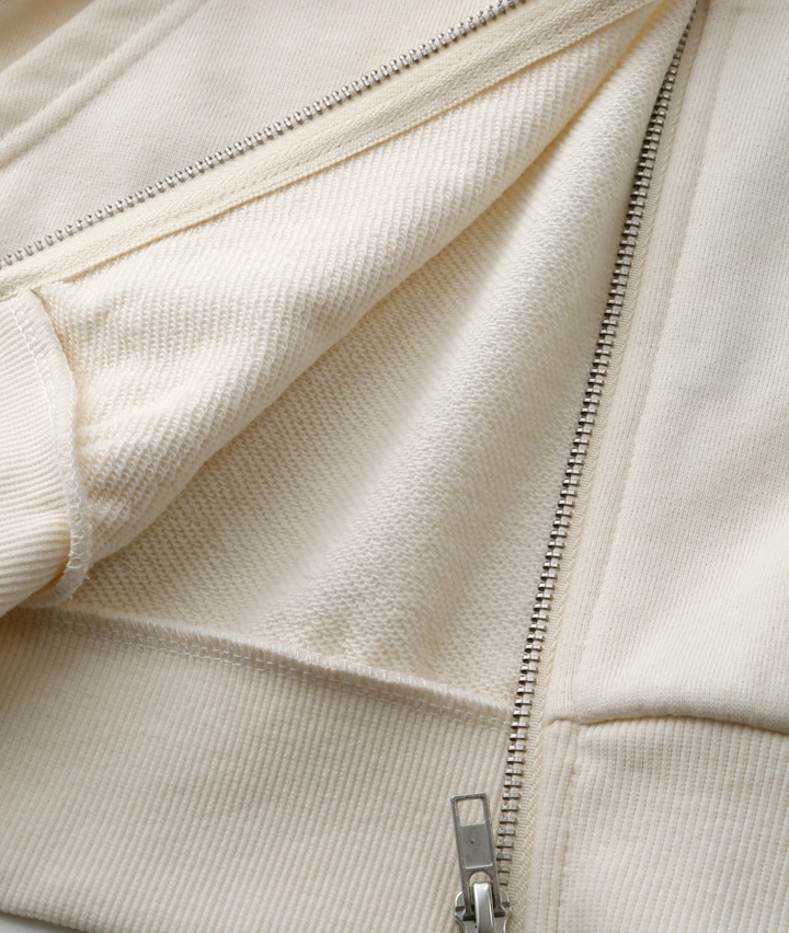 ・左胸、袖、バックに刺繍が入っているフルジップパーカです。