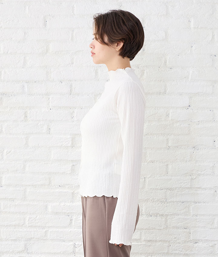 ・華奢見えが叶う適度な余白があるコンパクトサイズで、レイヤードもしやすいです。秋から春先までロングシーズン活躍するアイテムです