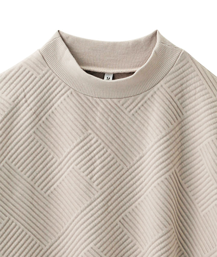 ・レトロな雰囲気のジャガード編みカットソー。配色のリブ切り替えでメリハリのあるデザインです。