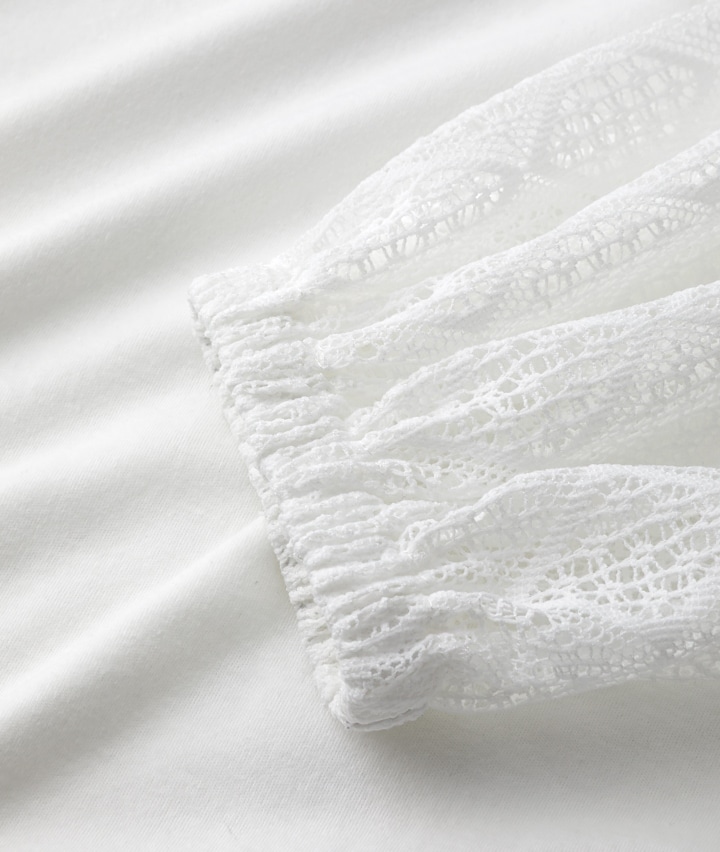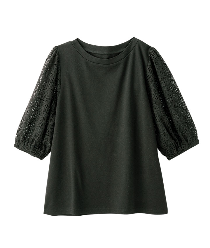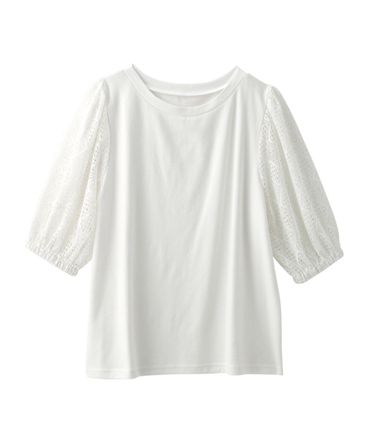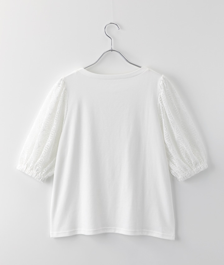 ・袖がレース切替になっていて清涼感もありつつ透け過ぎない素材感が◎