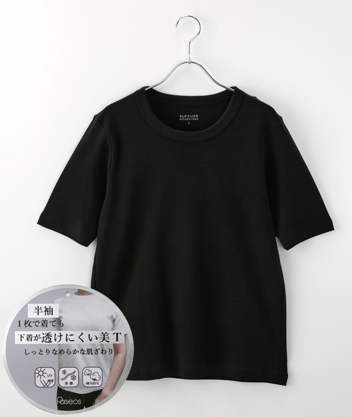 ・1枚で着ても下着が透けにくいTシャツ。しっとなめらかな肌ざわりです。