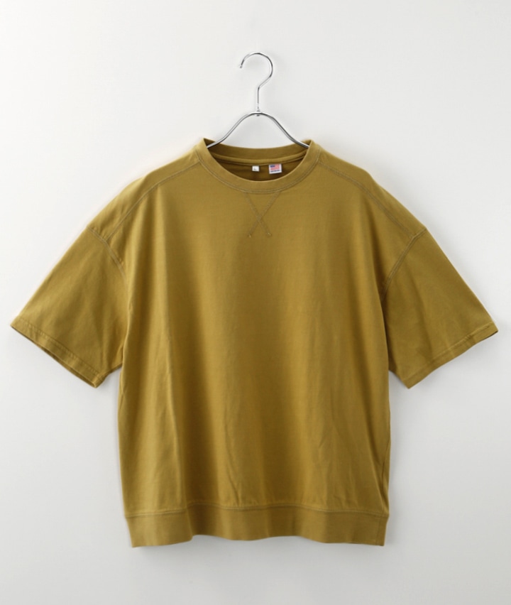 ・大人のためのこだわりTシャツ誕生。USAコットンのタフな生地感で、体のラインを拾わず、一枚で着てもサマになる立体的なシルエット。 ピグメント加工による奥行きのある色彩が、ワンランク上のこなれた印象に格上げします。首元のガゼットデザインがアクセントになり、ネックレスなしでも顔まわりが寂しくなりません。 きれいめパンツの外しアイテムとしても優秀な一着です。