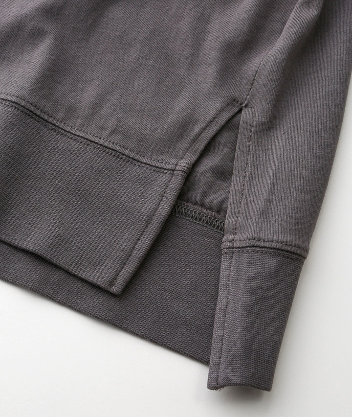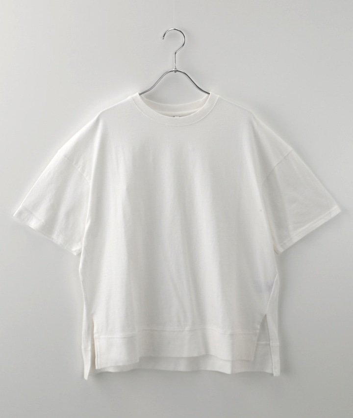 ・大人のためのこだわりTシャツ誕生。USAコットンのタフな生地感で、体のラインを拾わず、一枚で着てもサマになる立体的なシルエット。 ピグメント加工による奥行きのある色彩が、ワンランク上のこなれた印象に格上げします。前後差のある裾デザインでサイドにスリットが入っているので、前だけをラフにインするスタイルも形が作りやすく、誰でも簡単におしゃれなバランスが完成します。