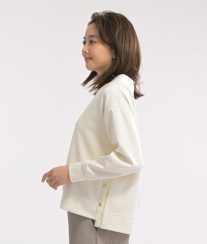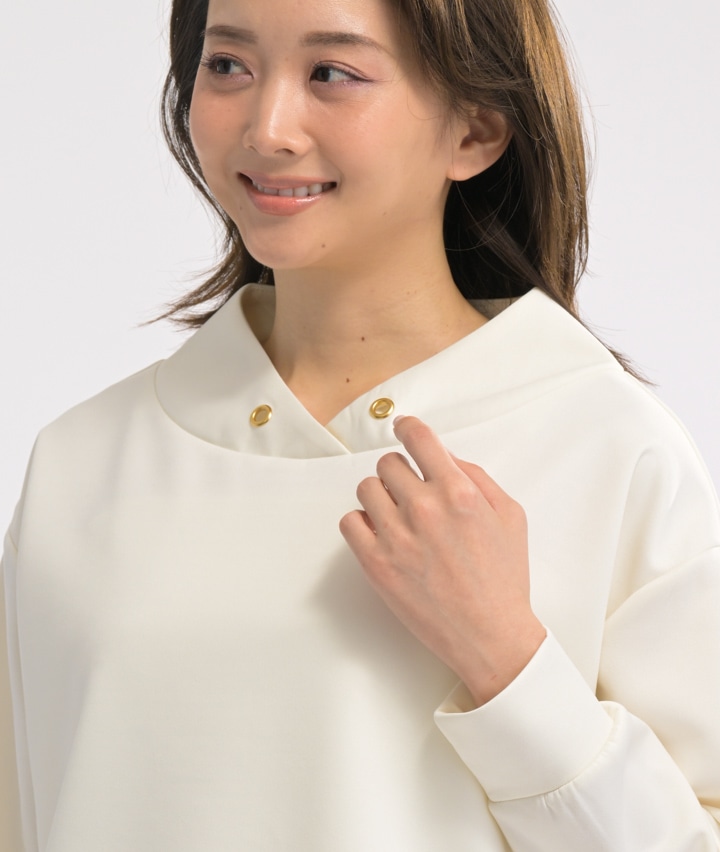 ・襟元のはと目がカジュアルなポイント
