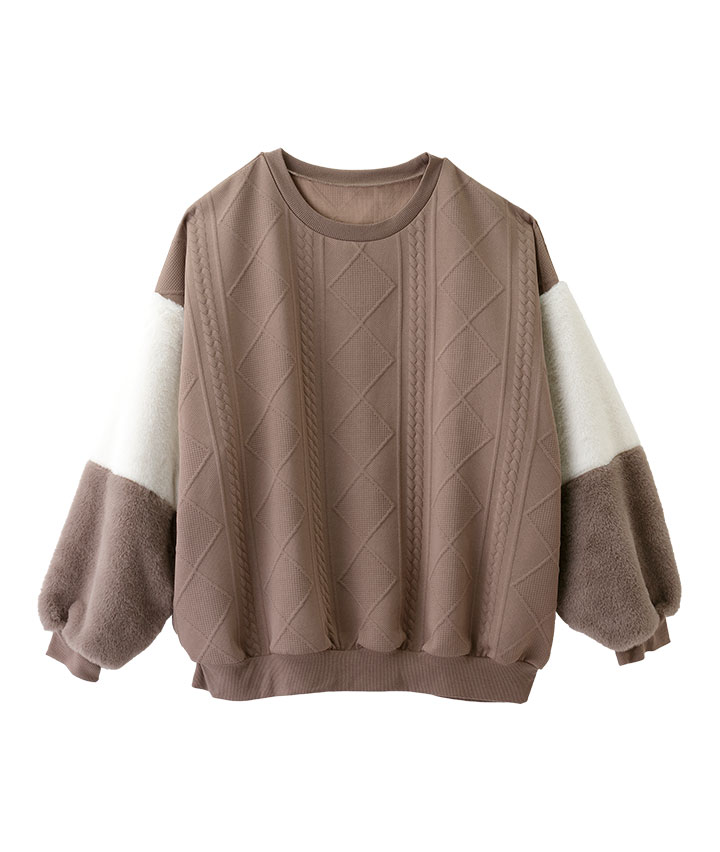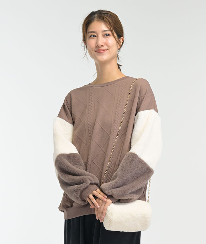 ・袖のファーが温かみとカジュアルさを表現。ジャケットやブルゾンの下にも着られるプルオーバーです。