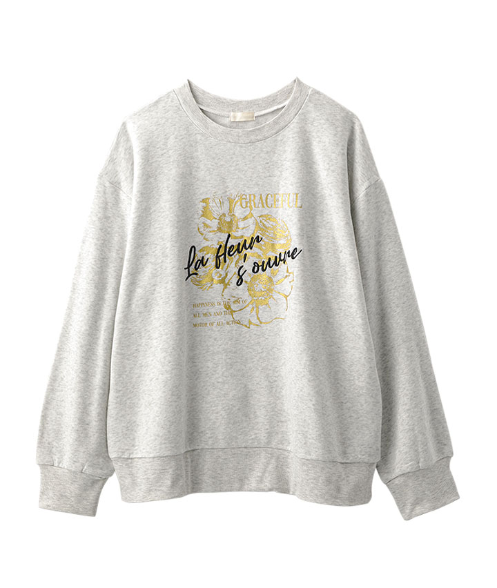 箔花プリント刺繍使い裏毛トレーナー
