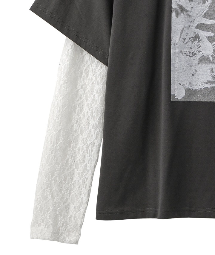 袖レースフェイクレイヤードTシャツ