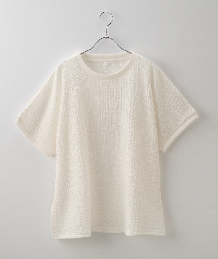 ・ぽこぽこした表面変化素材のプルオーバーです。