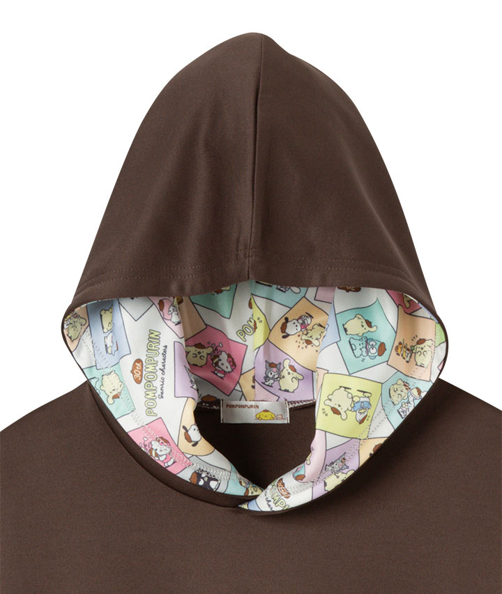 ・フロント、フード裏にポムポムプリンの総柄がプリントがされているプルパーカです。