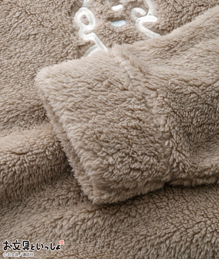 ・ボアフリーストレーナー:ポリエステル100%  裏シャギーパンツ:ポリエステル70% 綿30%  Tシャツ:ポリエステル65% 綿35%  パイル地ハンドタオル:ポリエステル100%  キーホルダー:アクリル樹脂  袋:不織布