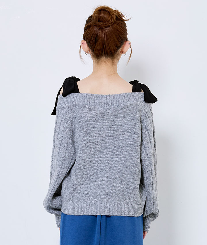 【10/22(水)10:00販売開始】肩リボンケーブルニット