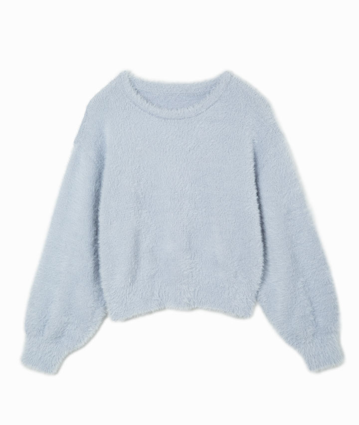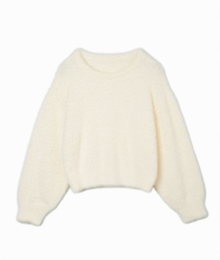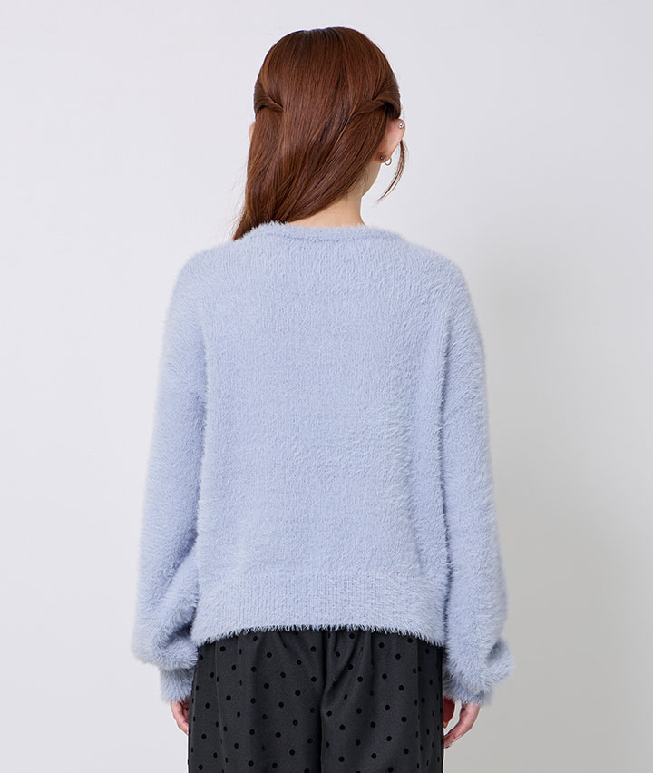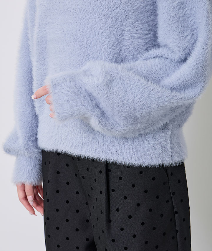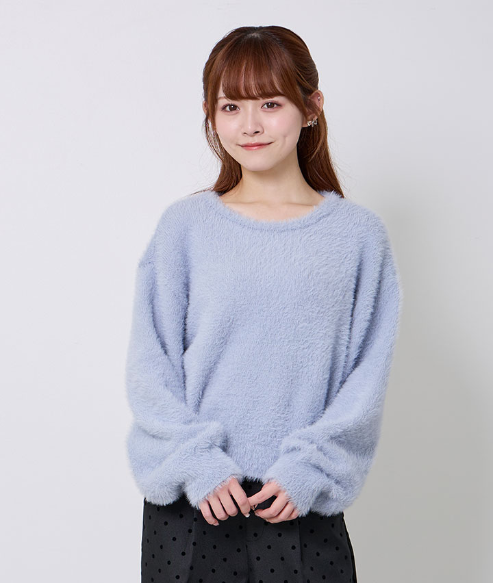 ・ふわっとした毛足が特徴の「シャギーニットプルオーバー」。やわらかな肌触りで着心地抜群。ほどよいボリューム感があり、1枚で主役になるアイテムです。