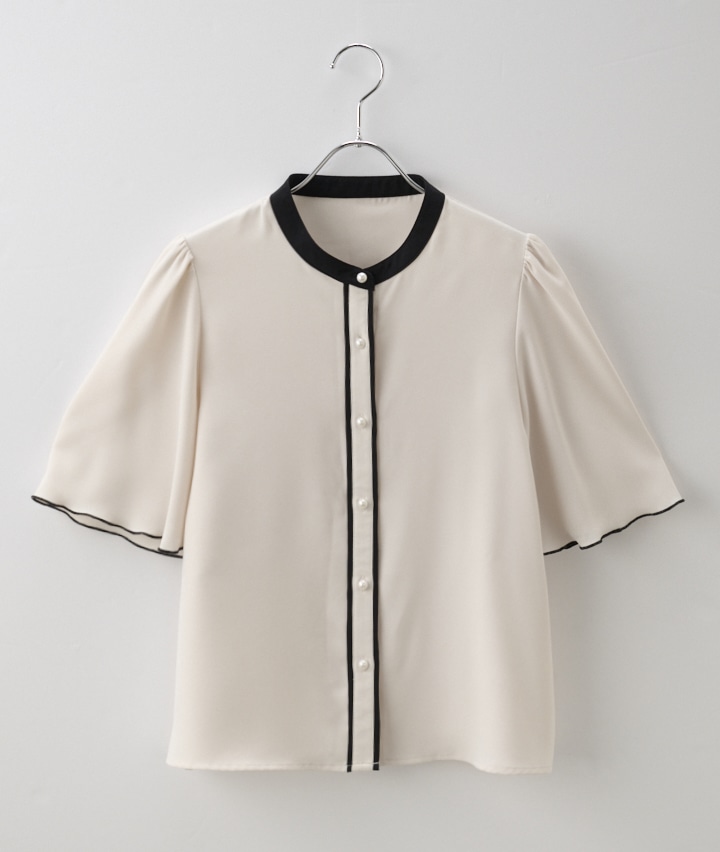 ・上品なホワイトパイピングが映える、きちんと感のある大人ブラウス。軽やかで涼しげな素材感とゆったりシルエットで、通勤からお出かけまで幅広く活躍します。