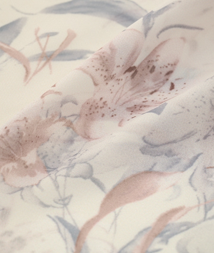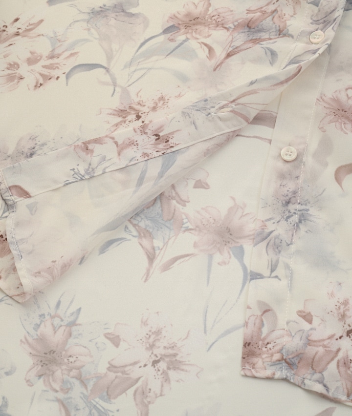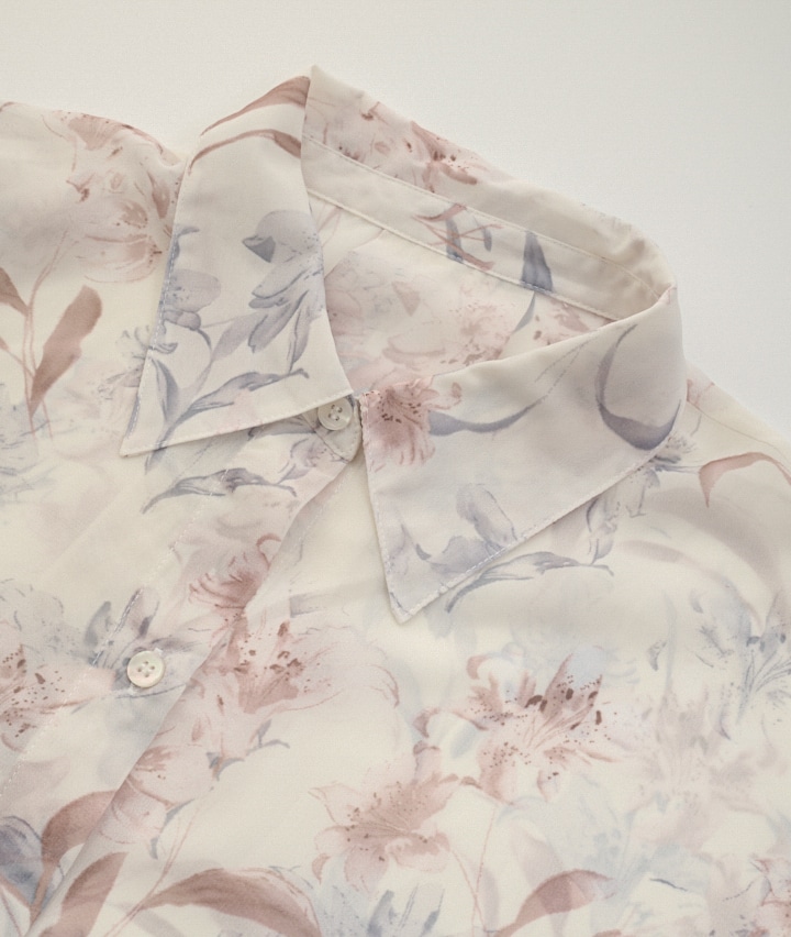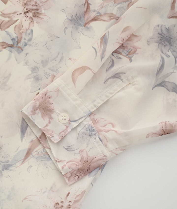 ・やさしいフラワープリントと透け感のある素材が魅力の上品フェミニンアイテム。軽やかな着心地と程よいゆったりシルエットで、通勤からお出かけまで華やかに着回せます