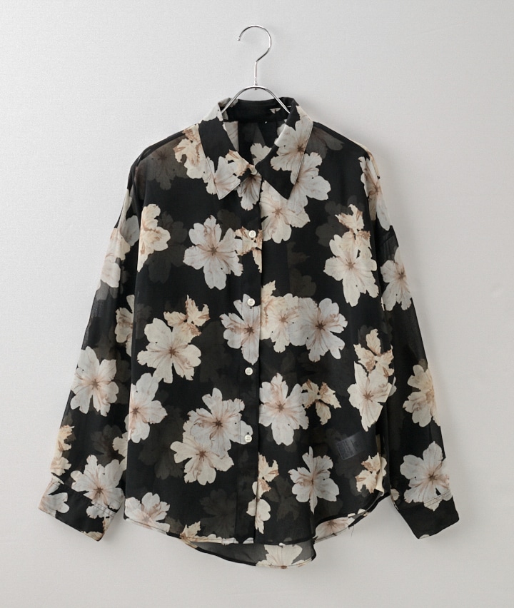 【04/15(水)10:00販売開始】トレンド婦人花柄シアーシャツ