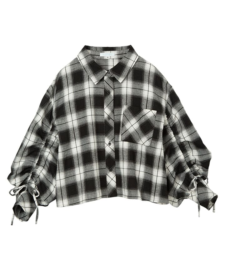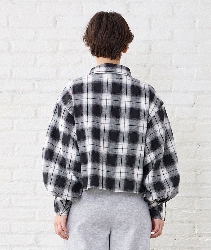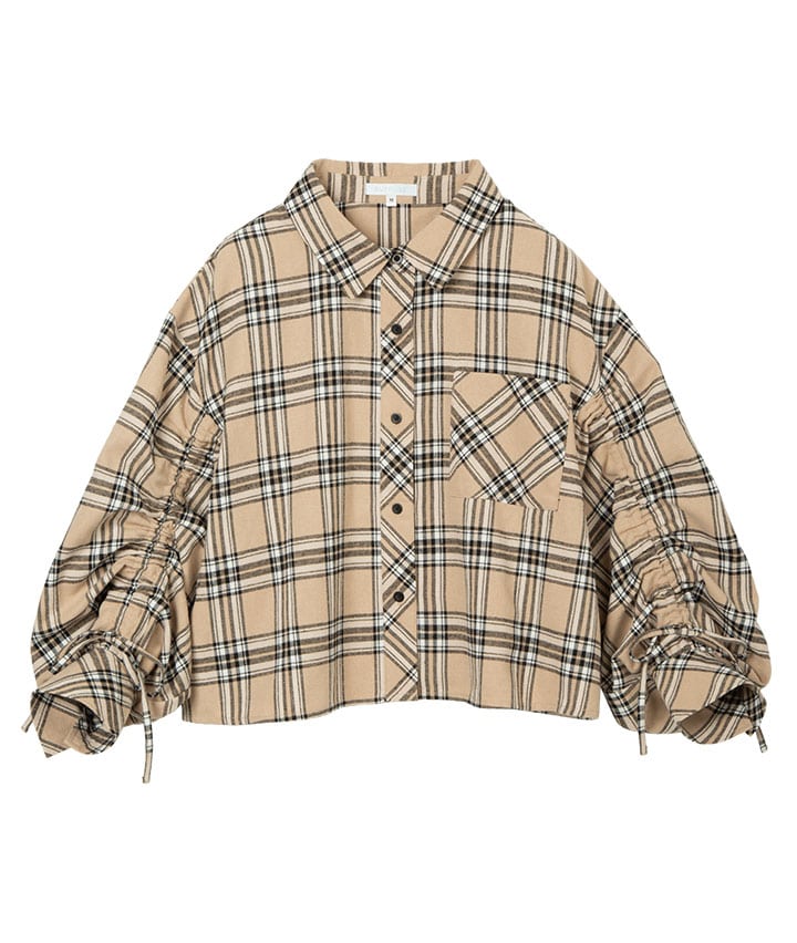 ・たっぷり入ったギャザーデザインがこなれ感のあるチェックシャツ。立体的でふんわりとしたシルエットが体型カバーをしつつ動きのある柔らかな印象を与えるアイテム。