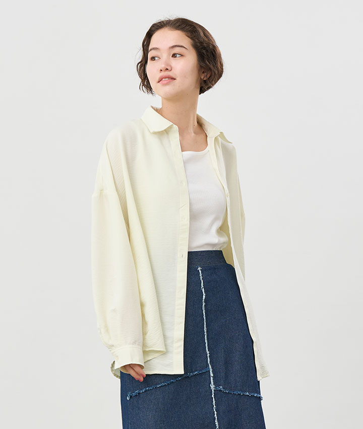 ・軽やかな素材のシャツ+無地タンクトップのセットアイテム。単品使いも可能なため、手持ちアイテムと合わせればコーデの幅も広がります。