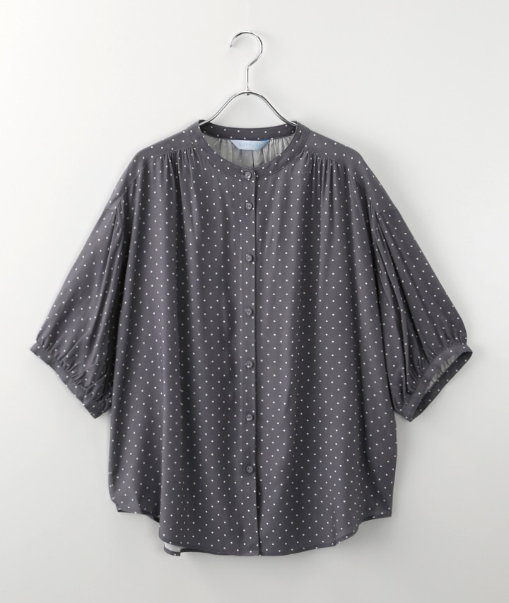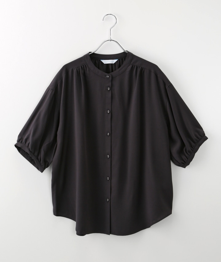 【04/22(水)10:00販売開始】(接触冷感・イージーケア)レーヨンバンドカラー5分袖ブラウス