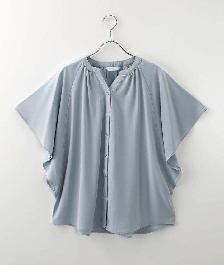 【04/22(水)10:00販売開始】(接触冷感・イージーケア)レーヨンバンドカラーフリル袖ブラウス