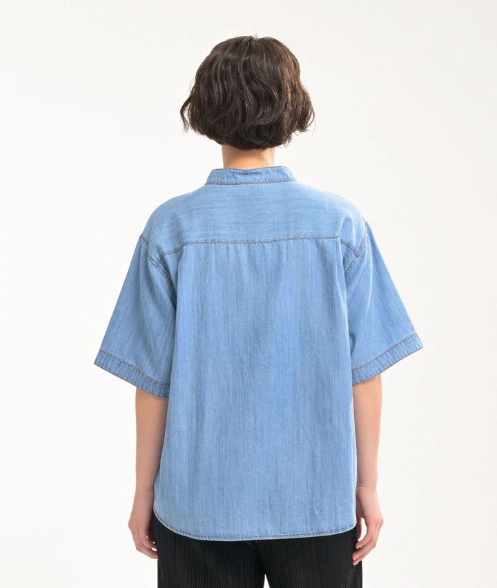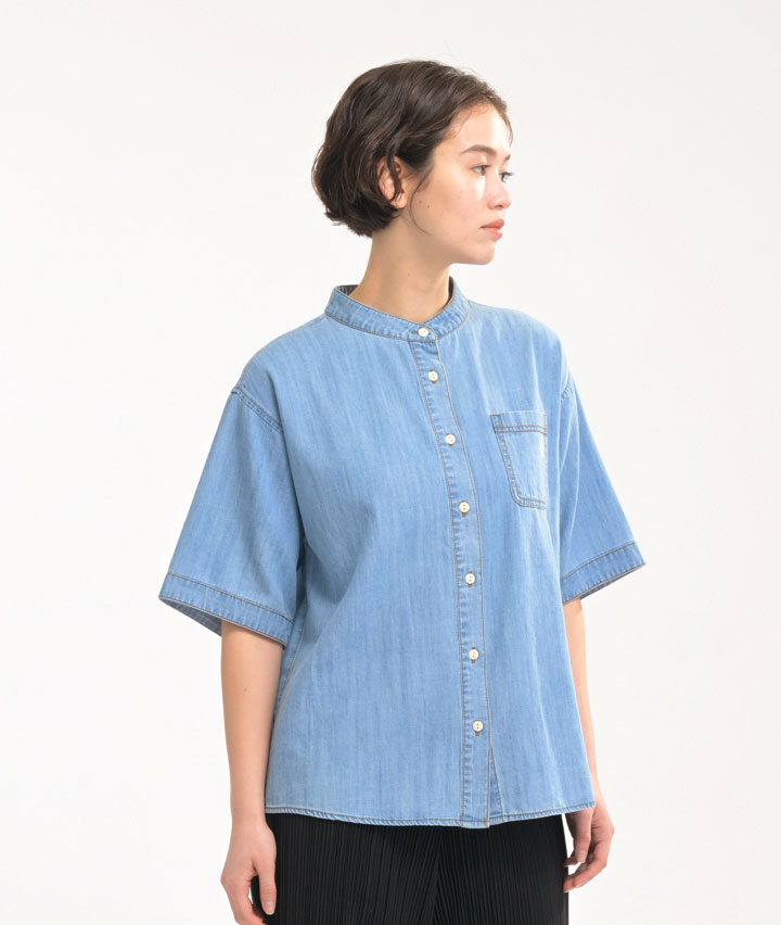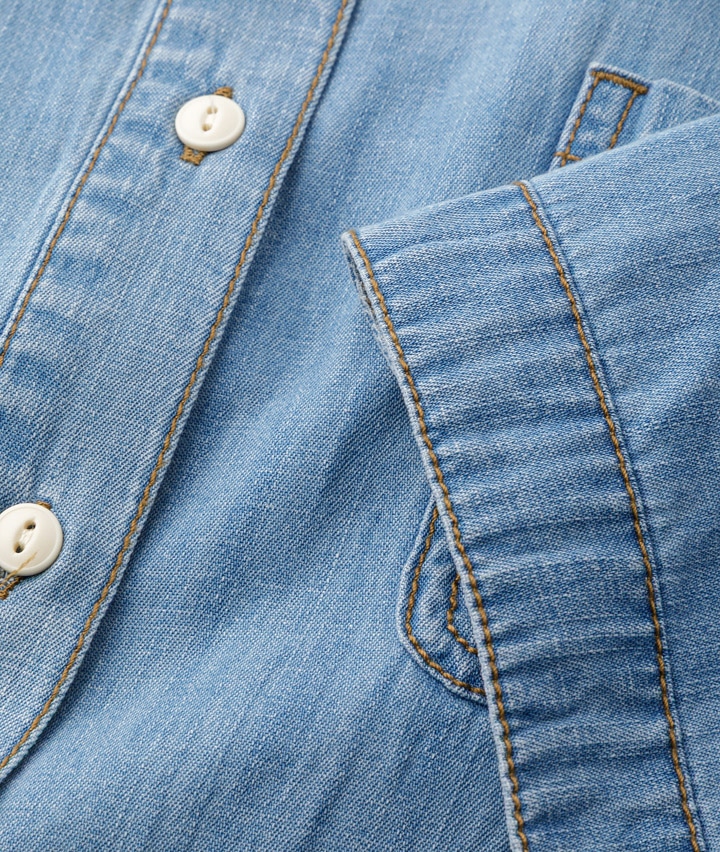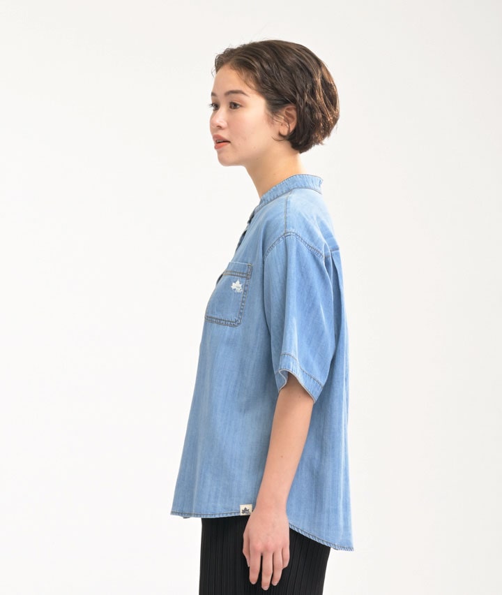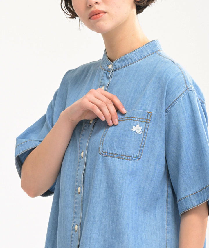 ・アウトドアシーンに映える、「LOGOS PARK」の半袖デニムシャツ。Tシャツの上にさらっと羽織るだけで、大人のアーバンアウトドアスタイルが完成!