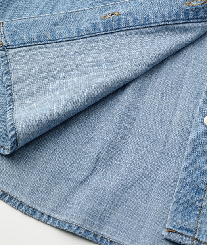 ・濃色の場合は、濡れた状態や強い摩擦により合成皮革や他の物に色移りする恐れがありますので、お取り扱いには十分ご注意下さい。・生成り・淡色製品には蛍光増白剤が入っていない洗剤をご使用下さい。・染料の特性上、白や淡色製品の衣類と一緒に洗うと色が移ります。お洗濯の際は単独荒井して下さい。・洗濯後多少の縮みがあります。・ボタン部分へのアイロンはお避け下さい。