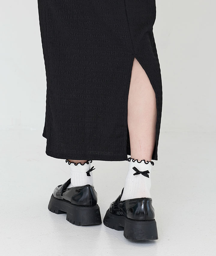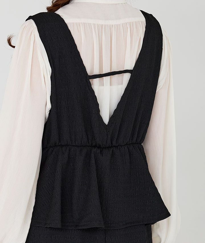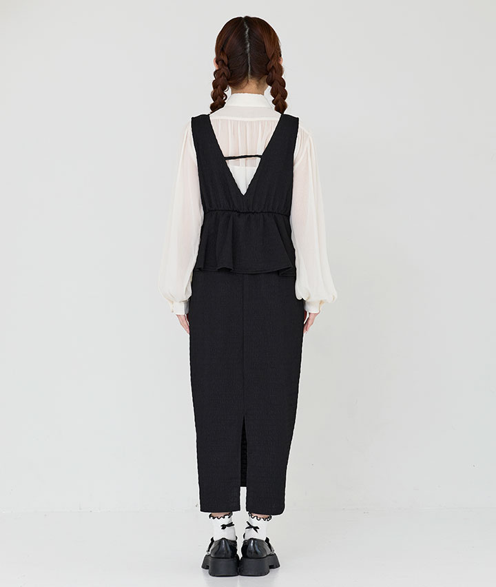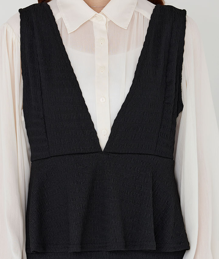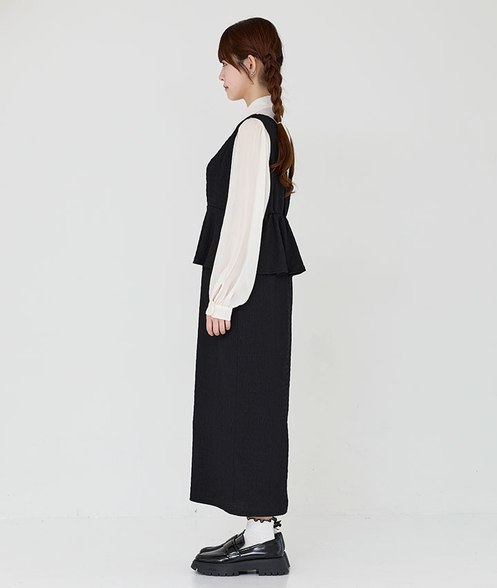 ・トレンドのペプラムデザインがポイントのワンピース。