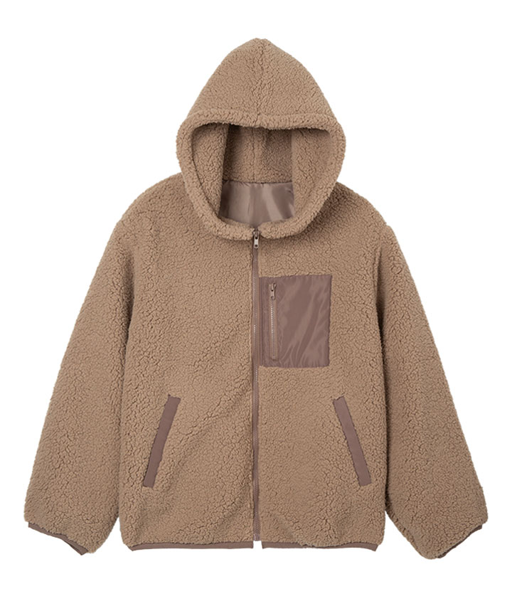 ・定番のボアブルゾン。軽くて暖かい素材を使用。肌触りがよくパーカー感覚で着用できるため、1枚あると便利なアウターです。