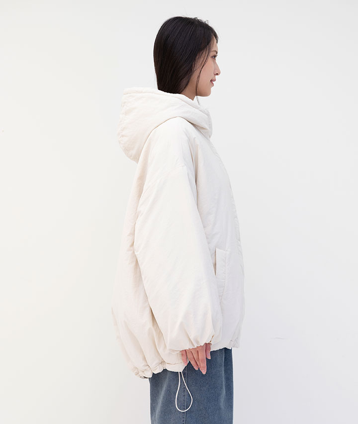 ・ボリューム感のあるシルエットで華奢見え効果抜群なモンスターパーカー。裾のドロストを絞ることでシルエットを変えても着用できます。優れた防寒性でこの冬活躍すること間違いなしの1着です。