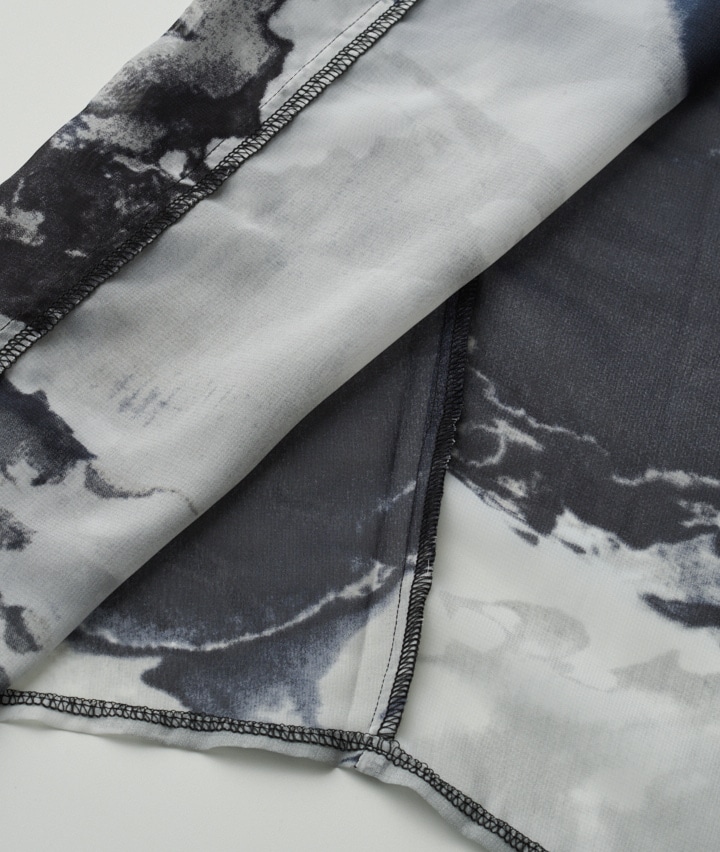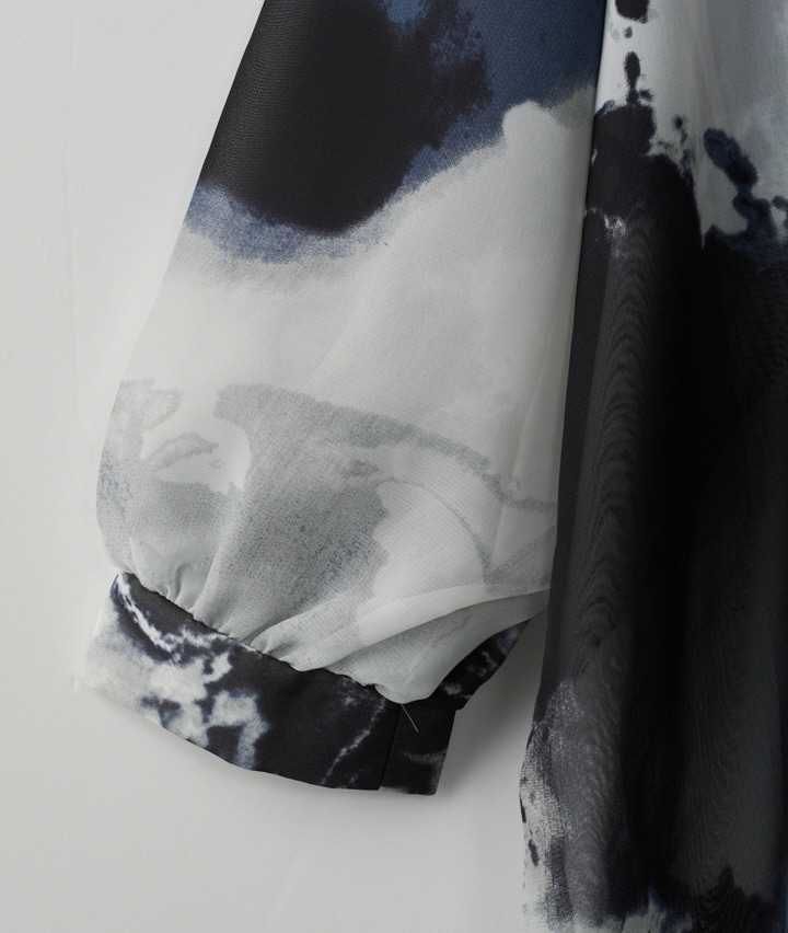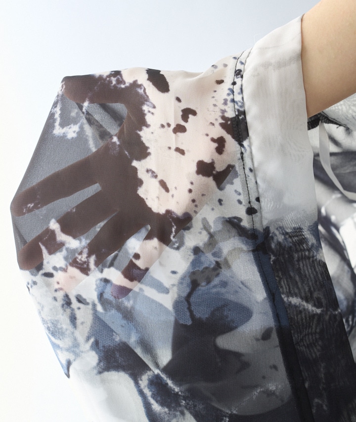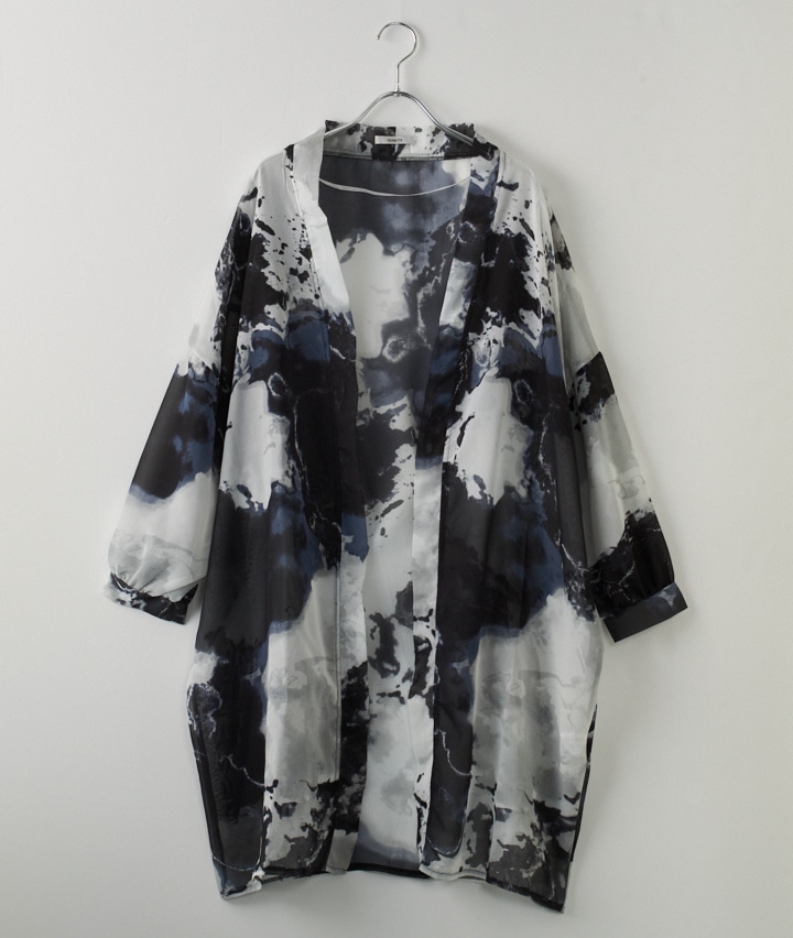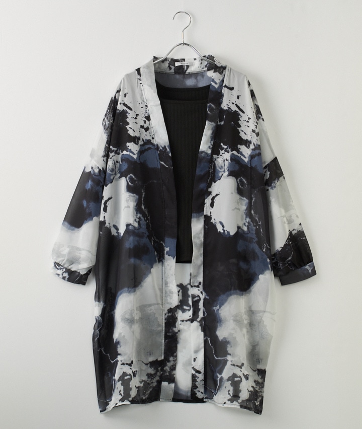 ・さっと羽織れるガウンとインナーのアンサンブル。ぼかし柄も良いアクセントになる、使い勝手の良い一枚です。