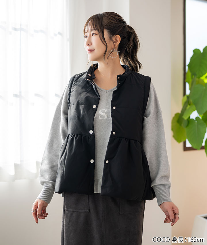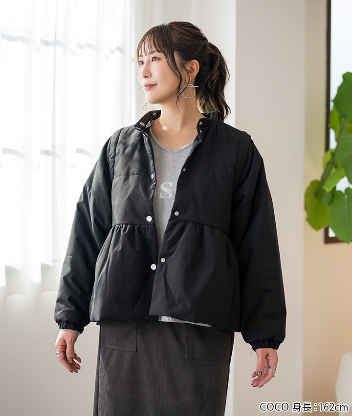 【10/29(水)10:00販売開始】ペプラム袖取り外し可能2WAY中綿アウター