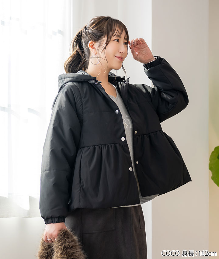 【10/29(水)10:00販売開始】ペプラム袖取り外し可能2WAY中綿アウター