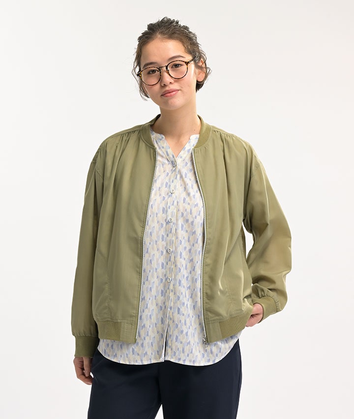・この透け感が、今っぽい。カジュアルすぎない上品な光沢感で、きれいめコーデにも取り入れやすい仕上がりのMA-1タイプシアーブルゾン。季節の変わり目から真夏の羽織りまで、ロングシーズン頼れる優秀アウターです。