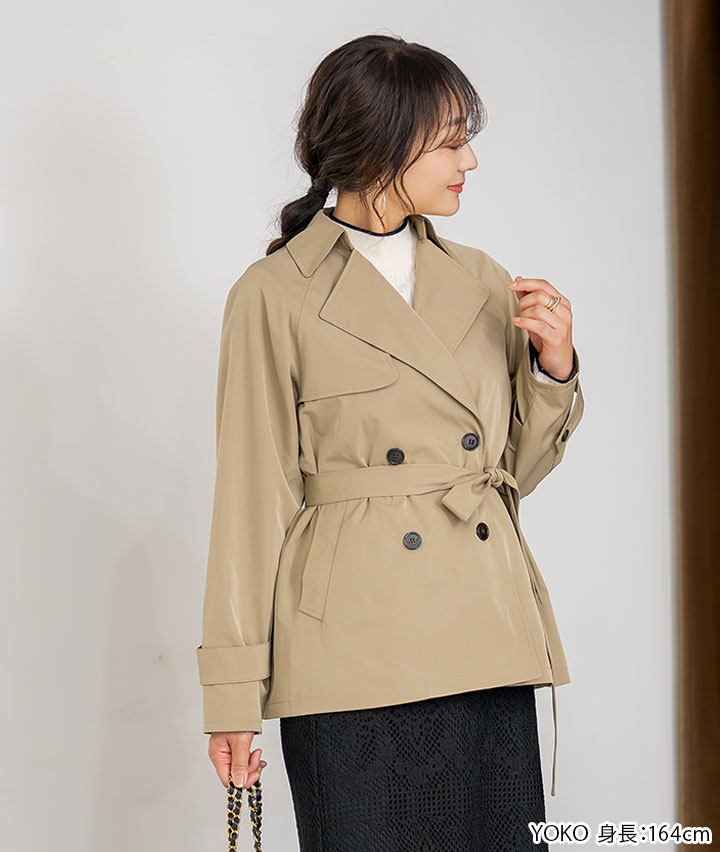 ・ライナー付きのショート丈トレンチコートは寒暖差の激しい時期にもってこいのアイテムです。