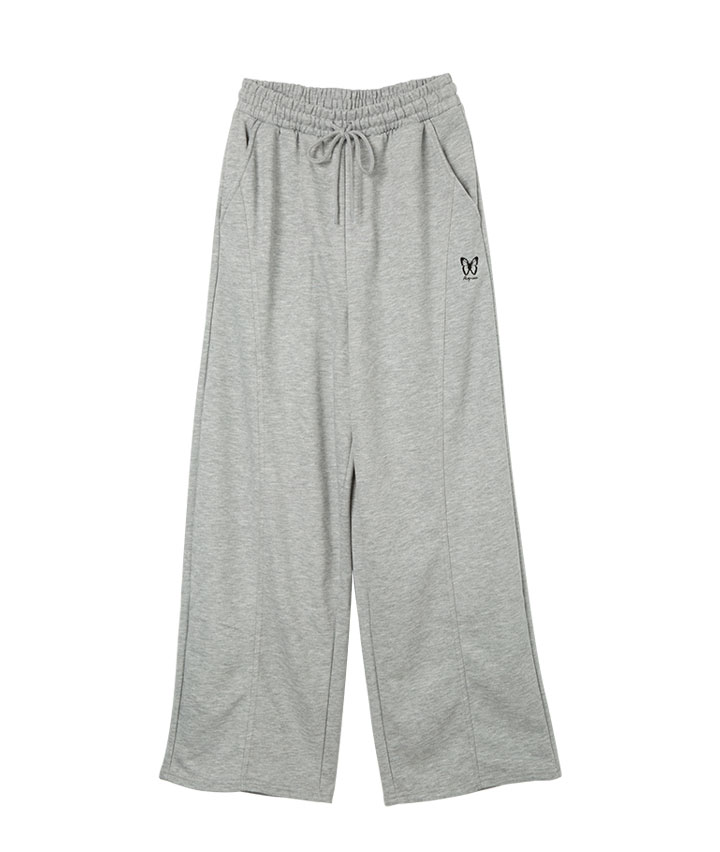 蝶刺しゅう裏毛ワイドパンツ