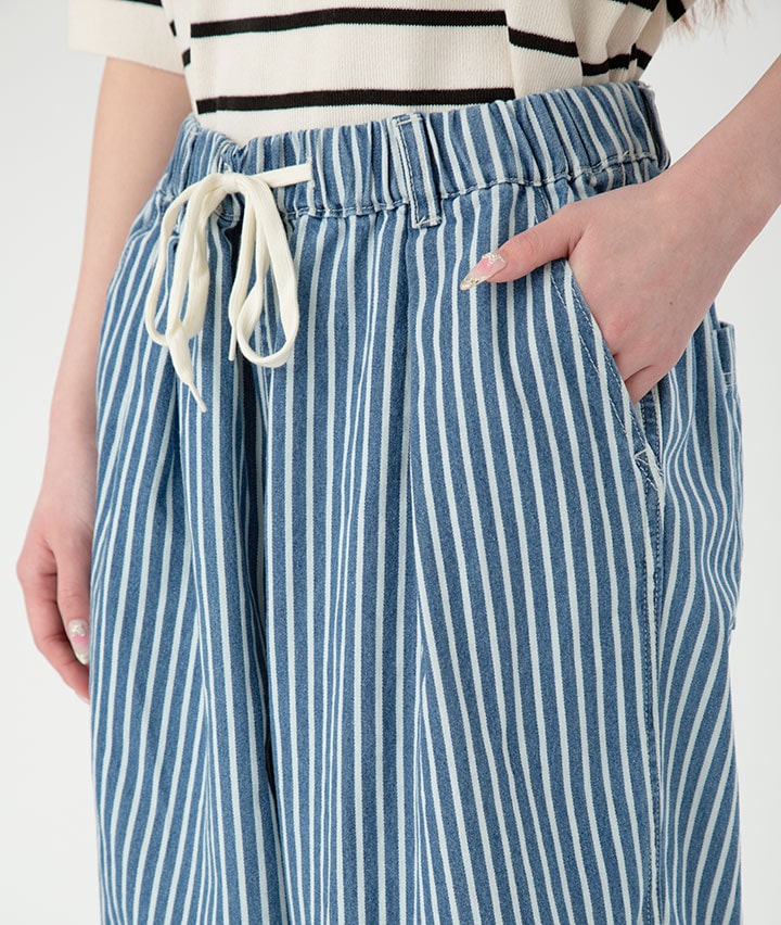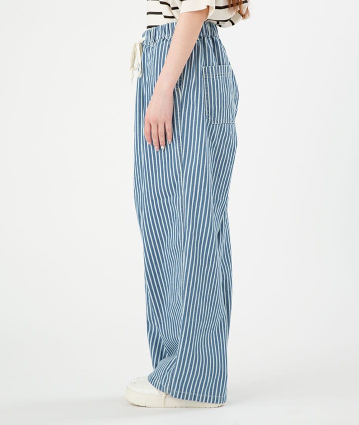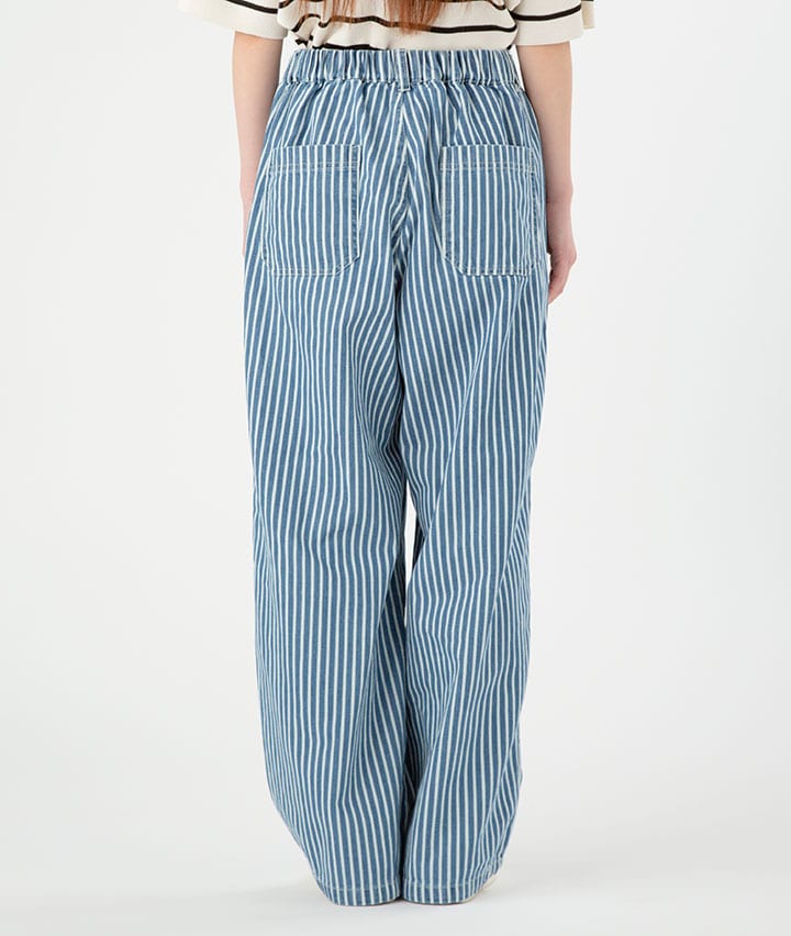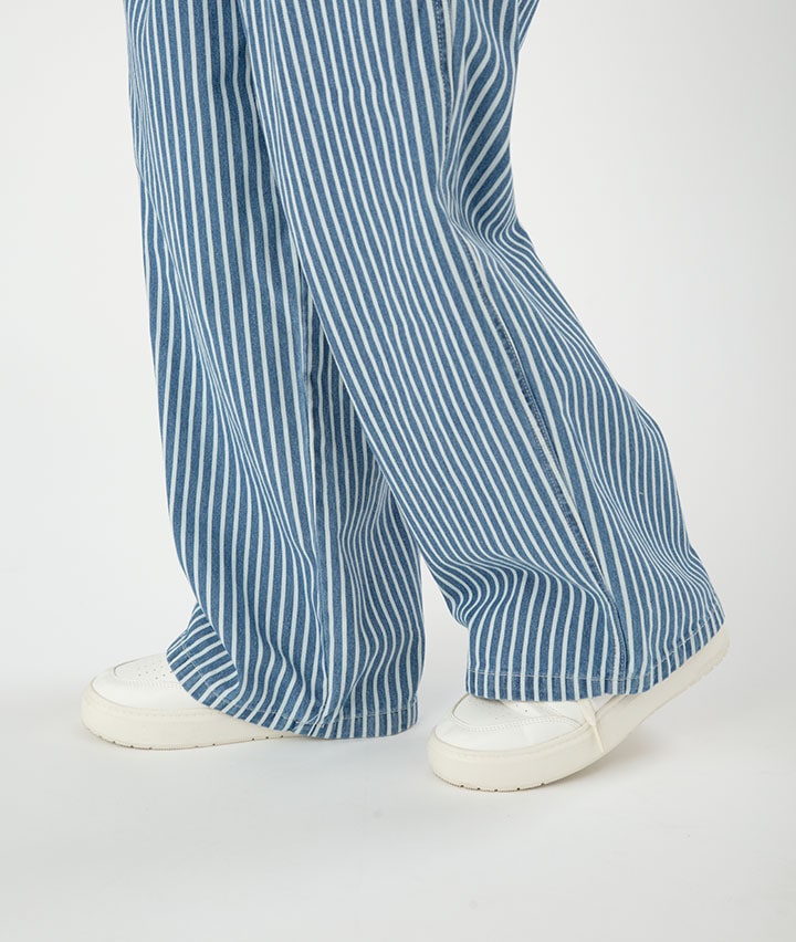 ・トレンドのデニム素材で、ストライプのゆったりシルエットのイージーパンツです。