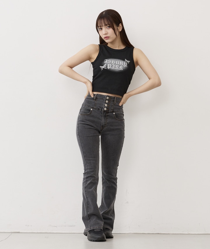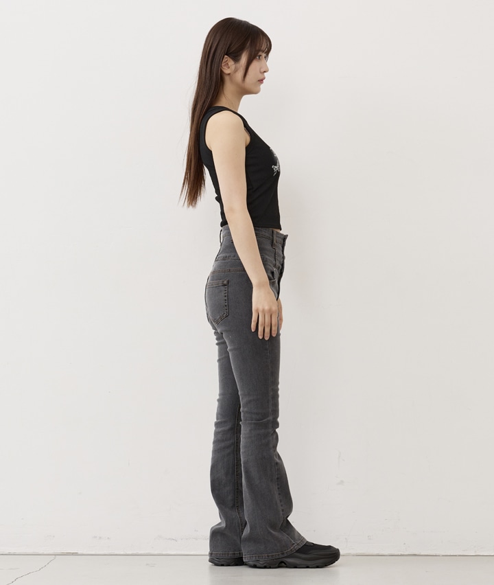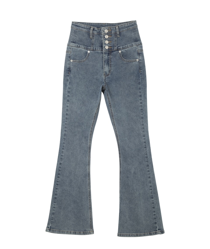 【04/22(水)10:00販売開始】<トレンドスタイル>スーパーハイウエストデニムフレアパンツ