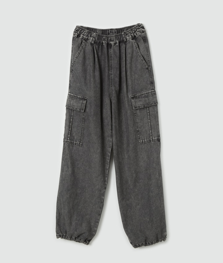 ・お化け刺繍がポイントのデニムカーゴパンツです。刺繍がある後ろ左ポケットは、デザインの都合上、ポケットとし使用できない仕様(飾りポケット)になっております。