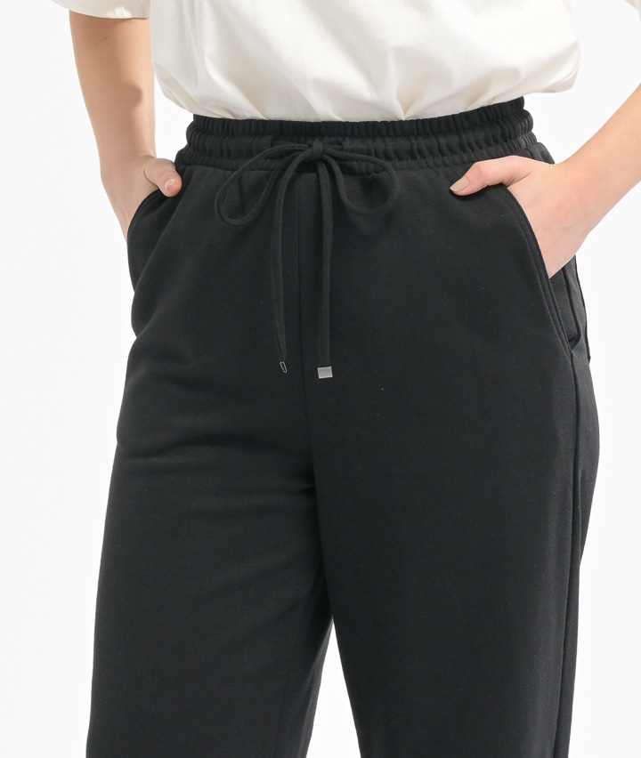 ・ドロスト付ワイドパンツ。トレンドのスウェットでイージーパンツ仕様。