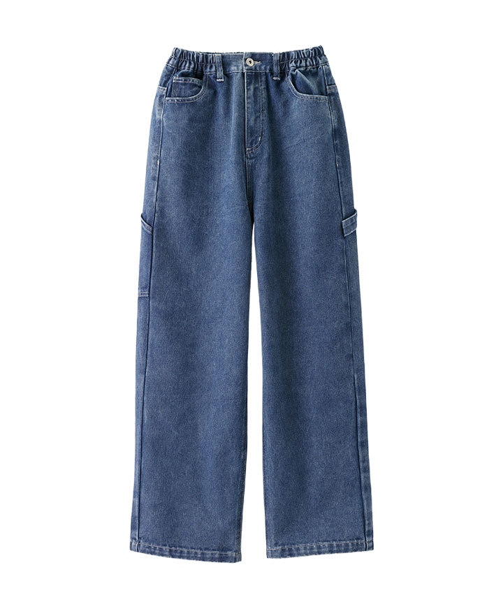 ・ウェストがゴムで履きやすいデニムパンツ。セミワイドシルエットでゆったり履ける。