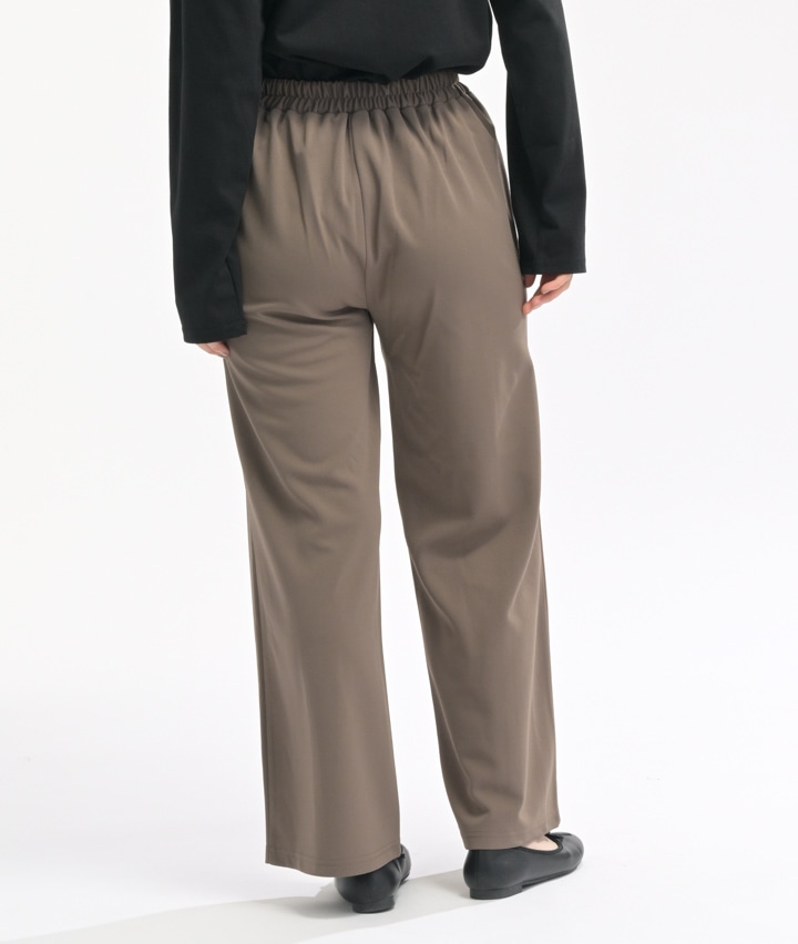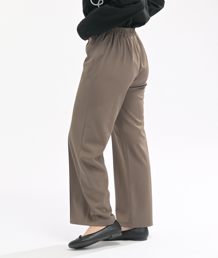 ・きれいメなツイルのストレートパンツです。ウエストゴムで履きやすいパンツです。